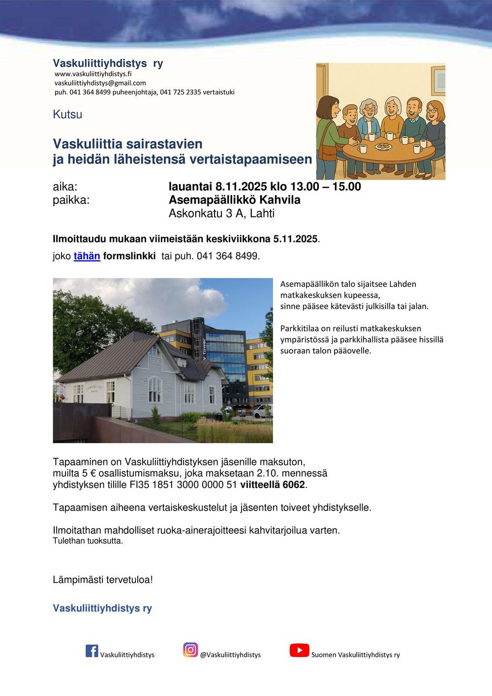 Vaskuliittia sairastavien ja heidän läheistensä vertaistapaaminen