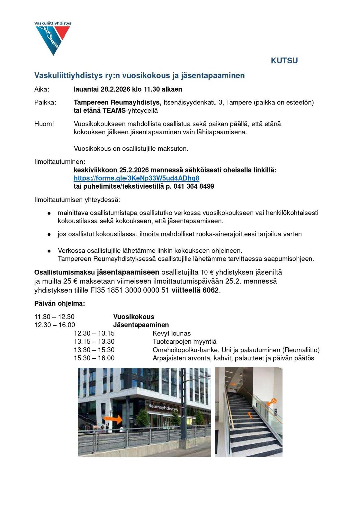 Vaskuliittiyhdistys ry:n vuosikokous ja jäsentapaaminen